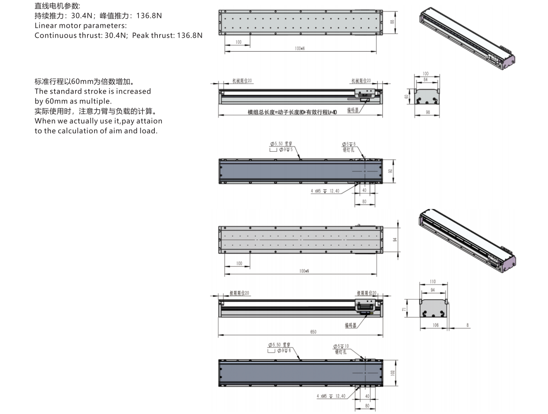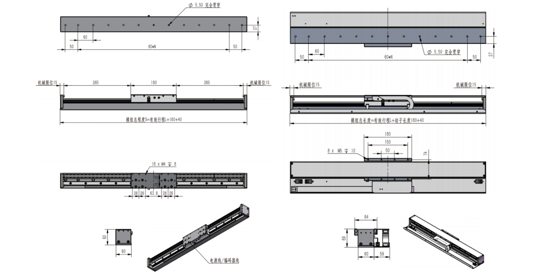緊湊型直線電機(jī)模組同樣使用永磁同步直線電機(jī),包括動(dòng)子和模塊化的定子。