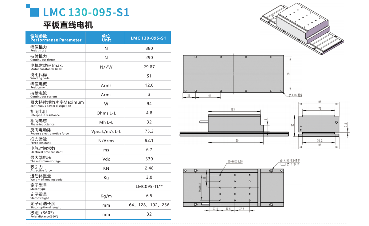 LMC有鐵芯電機(jī)采用了極佳的抗齒槽效應(yīng)的解決方案,盡最大限度降低齒槽效應(yīng),這一切都無(wú)需偏斜磁鐵。它們外型小巧、低吸力,適合替代很多無(wú)鐵芯應(yīng)用,電機(jī)產(chǎn)生的高推力使其成為加速和移動(dòng)高質(zhì)量以及加工過(guò)程中保持剛度的理想選擇。